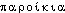 «séjour dans un pays étranger» Septante Sagesse, XIX, 10; Actes, XIII, 17 [désigne le séjour en Égypte]; puis «communauté, église particulière» début IVes.; «diocèse» 2e moitié IVes. ds Archéol. chrét. t.13, 2e partie, col. 2199) sous l'infl. du lat. class. parochus «régisseur des magistrats en voyage» (transc. du gr.